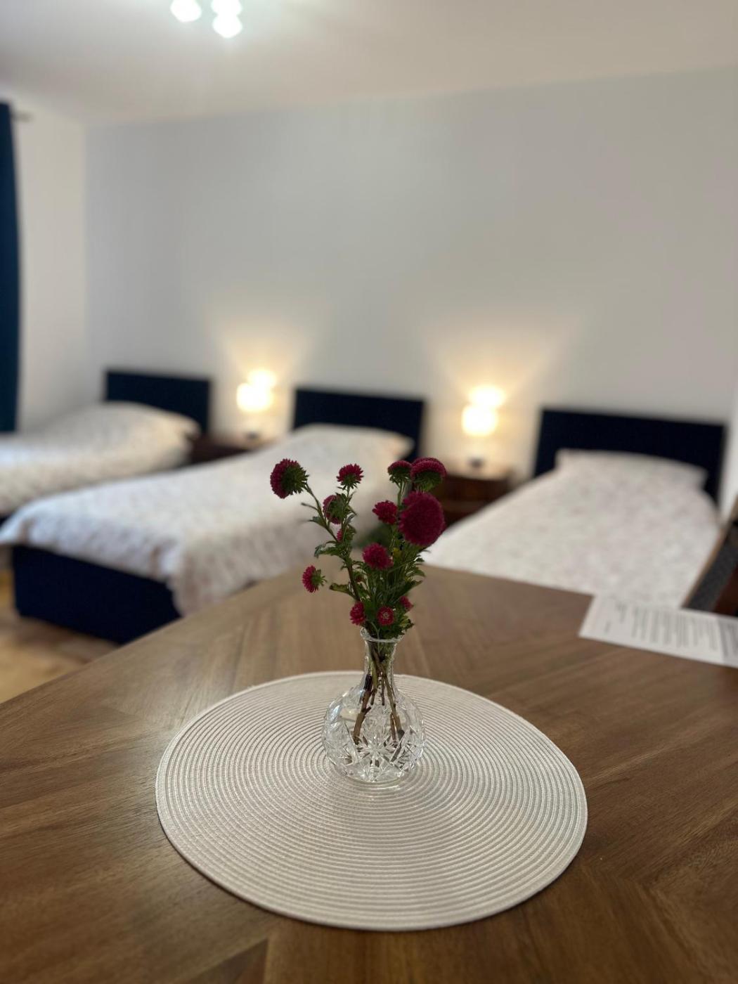 Pokój trzyosobowy. In the well-fitted kitchen, guests will find a stovetop, a refrigerator, kitchenware and an oven. This triple room is comprised of a flat-screen TV with streaming services, a shared bathroom as well as a terrace with garden views. The unit has 3 beds. Pokój Trzyosobowy - 3 osobowy. Powierzchnia pokoju ok.: 30 mkw.