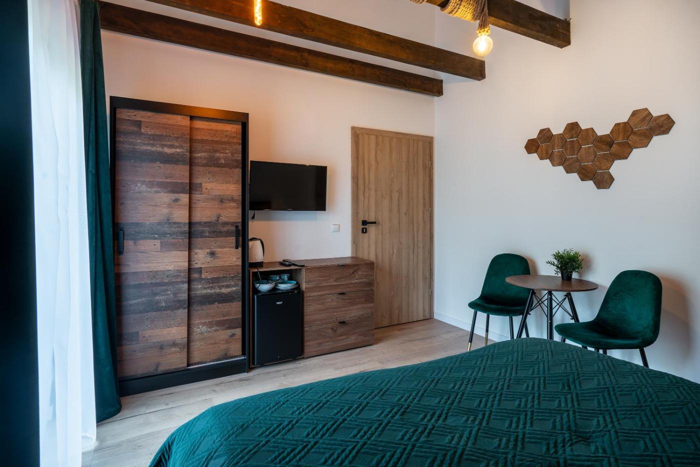 Pokój Dwuosobowy z widokiem na ogród. Providing free toiletries, this double room includes a private bathroom with a shower. The double room provides a flat-screen TV with cable channels, a wardrobe, an electric kettle, parquet floors as well as garden views. The unit offers 1 bed. Pokój Dwuosobowy - 2 osobowy. Powierzchnia pokoju ok.: 14 mkw. ;
