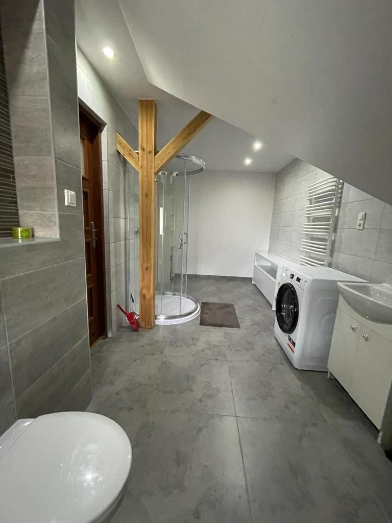 Dom z 2 sypialniami. Meals can be prepared in the well-fitted kitchen, which features a stovetop, a refrigerator, kitchenware and a microwave. The holiday home features a washing machine, a private entrance, a tea and coffee maker as well as a terrace with garden views. The unit has 7 beds. Dom wakacyjny - 7 osobowy. Powierzchnia pokoju ok.: 20 mkw.